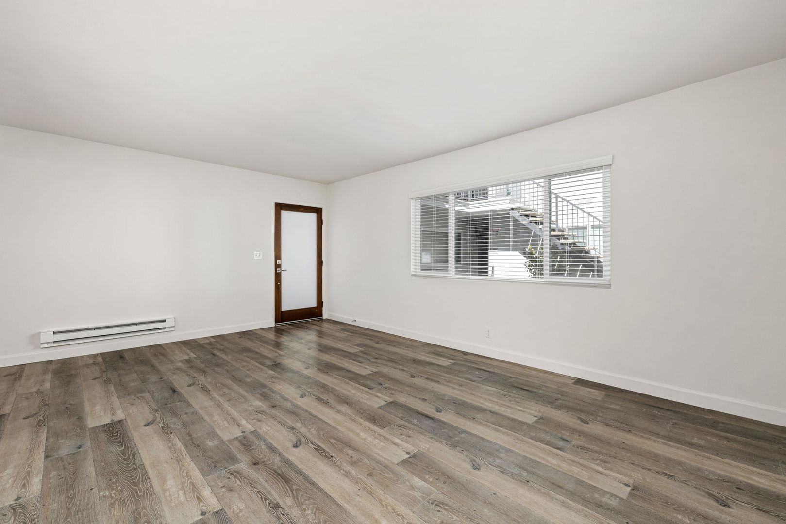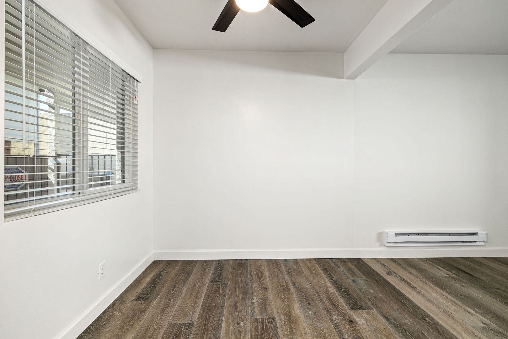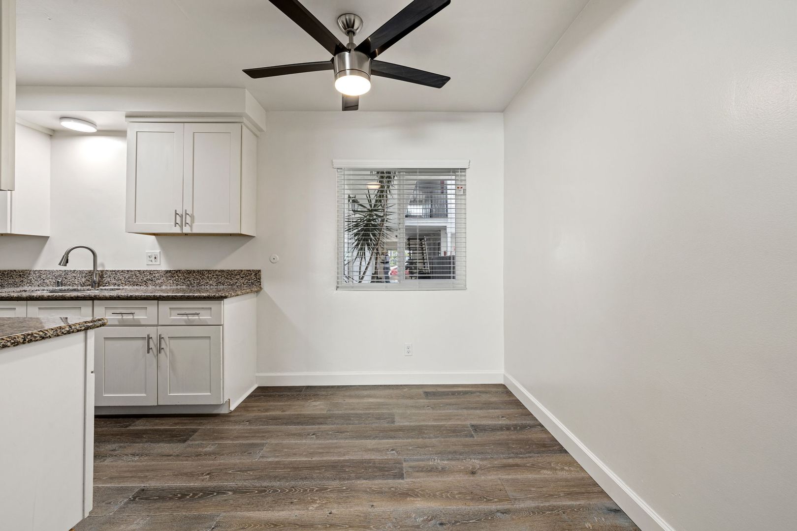 Remodeled 2 Bedroom 2 Bathroom with: Shaker white cabinets in the kitchen and bathroom, granite, tile floors in the kitchen and bathroom, stylish wood laminate floors in the living room, carpet in bedroom, STAINLESS STEEL APPLIANCES, crown molding in living room, and A SMOOTH LIVING ROOM AND KITCHEN CEILING! Controlled Access building. This unit also includes a 1 gated carport parking spot. 1 Year Minimum Lease.