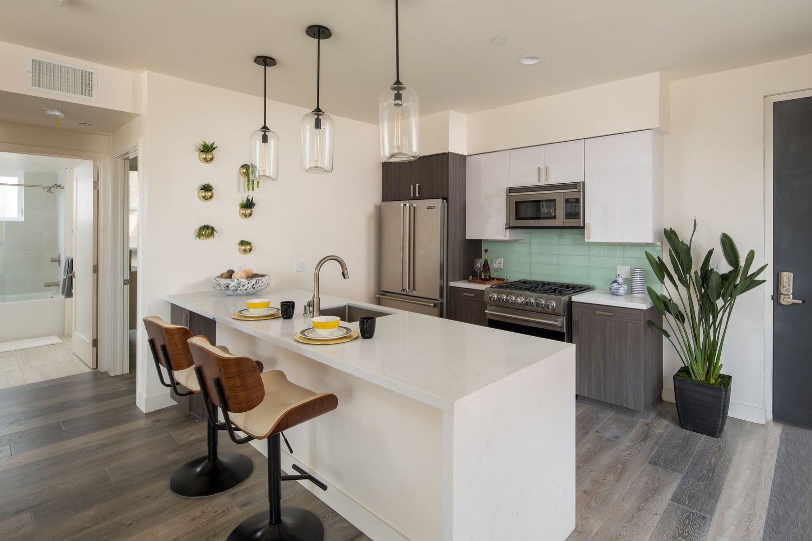 NEWLY BUILT apartment homes with large decks, OCEAN and mountain views (select units) along with great outdoor lounge areas with WIFI, BBQ'S AND FIRE PITS! Designed by the award-winning architecture firm KFA, Pico Eleven is a modern apartment building where every detail is designed with the residential community in mind with stunning interiors, top of the line appliances (Viking appliances in select units) and a private deck for each apartment. Residents at Pico Eleven will live in the best Santa Monica has to offer. Each apartment uniquely maximizes space and lighting with open floor concepts and large windows perfectly located to frame in the evening’s golden sunsets over the Pacific. Residents will be able to entertain at any of the three community ocean view decks equipped with wifi, gas fire pits, a built in BBQ and plenty of seating.