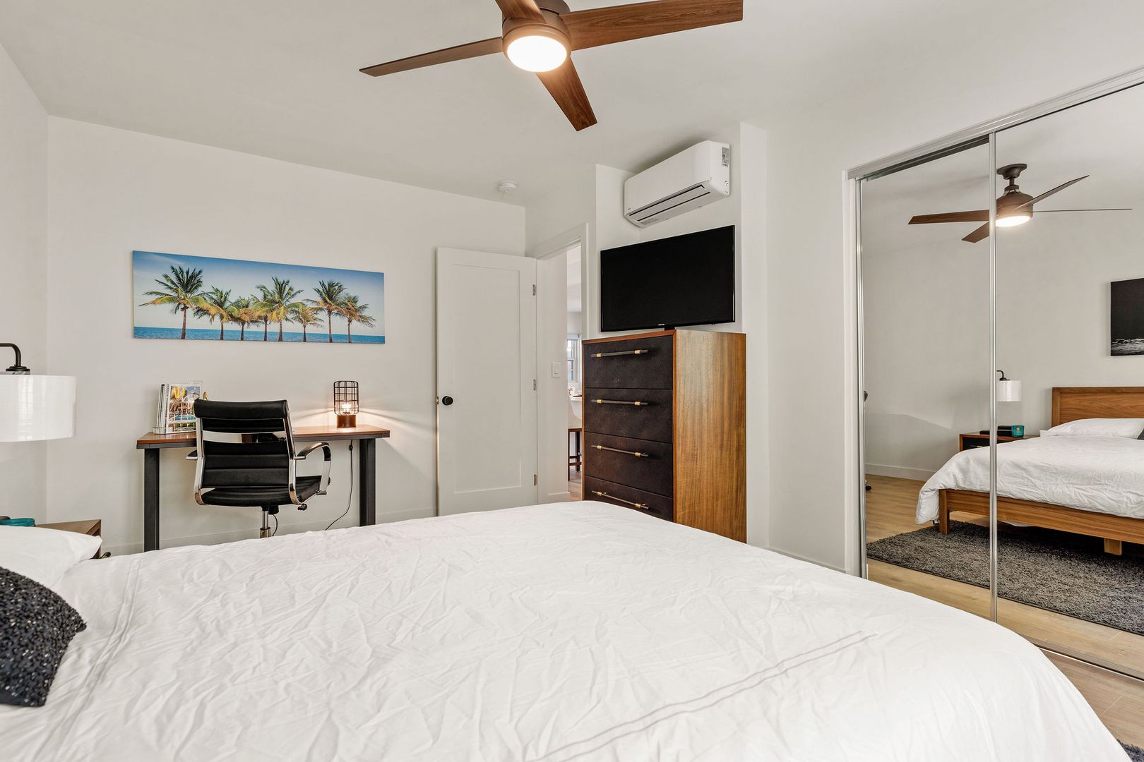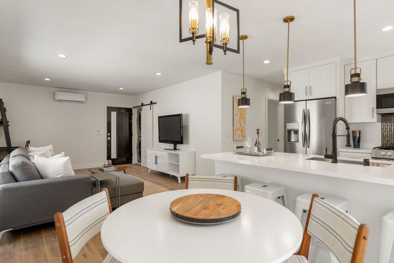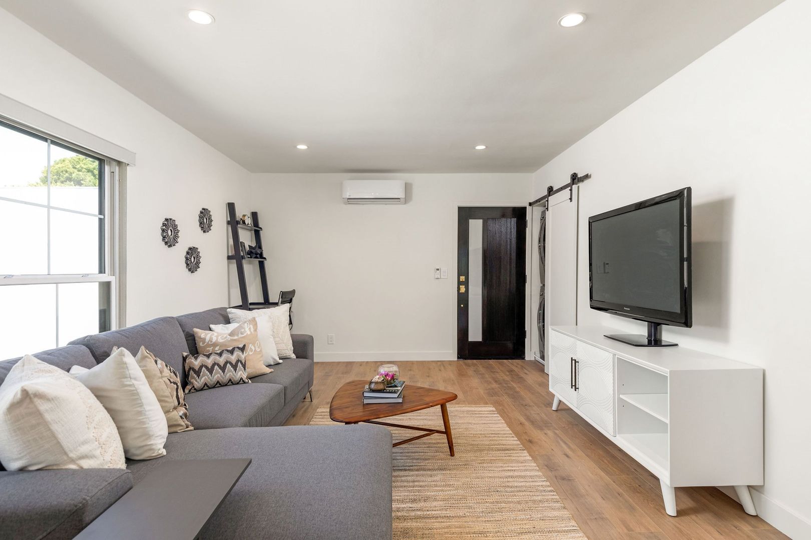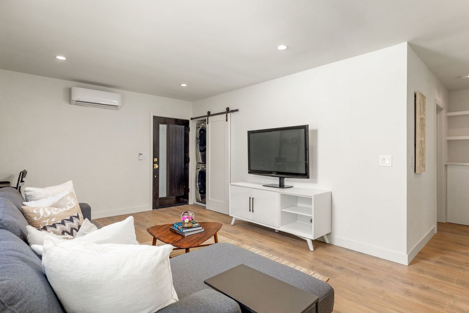 NEWLY Remodeled 1 Bed 1 Bath apartment comes with: Shaker white cabinets in the kitchen and bathrooms, quartz counters, tile floors in the bathroom, stylish wood laminate floors in the living room, kitchen & bedrooms, new SOAKING (DEEP) tub and wall tile, Recessed lighting, STAINLESS STEEL APPLIANCES (dishwasher, range, microwave & refrigerator), WASHER and DRYER in unit, AC in bedroom and Living Room, fixtures and SMOOTH CEILINGS throughout!.