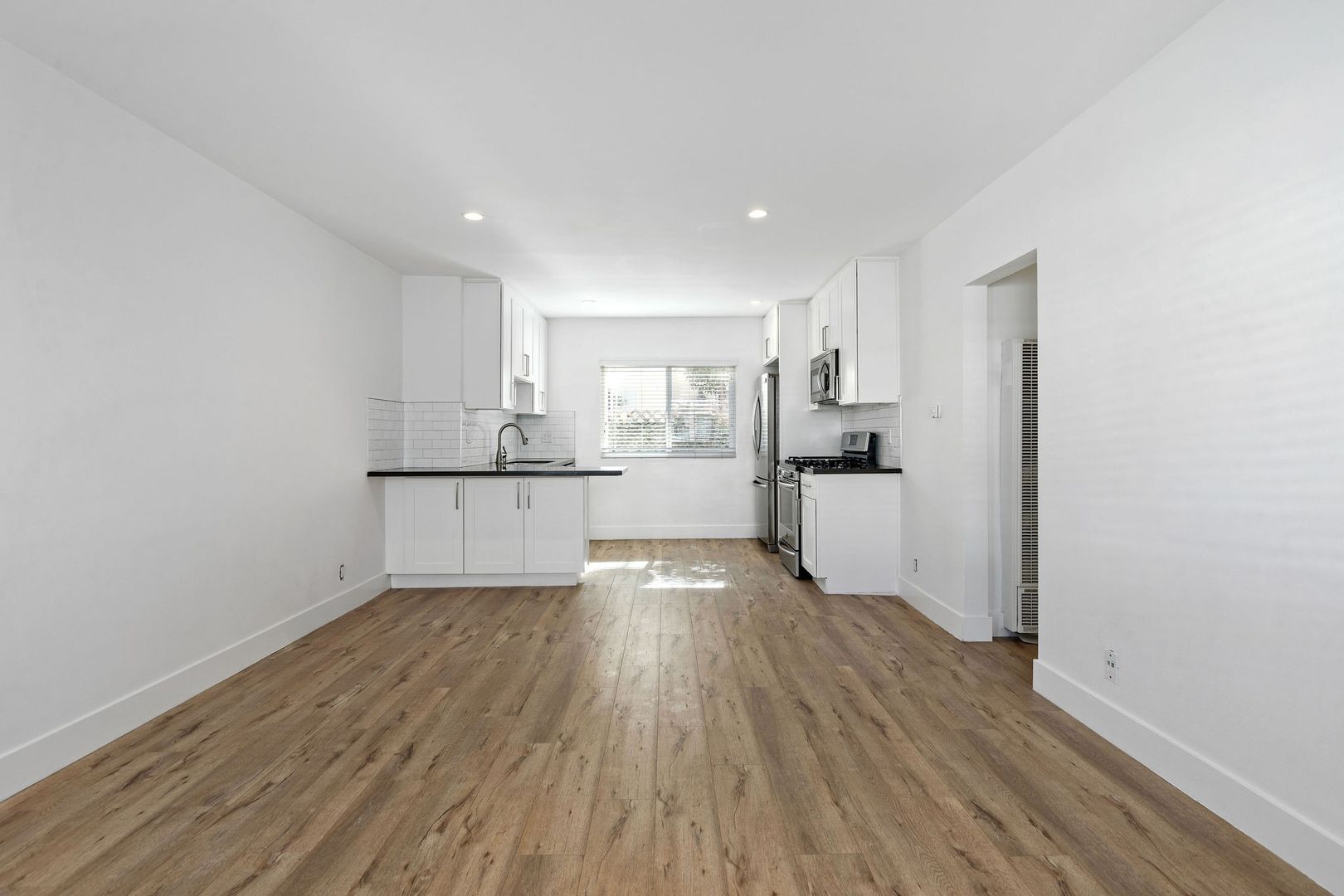 Remodeled 1 Bedroom 1 Bathroom comes with: Shaker white cabinets in the kitchen and bathrooms, grey quartz counters, tile floors in the bathroom, stylish wood laminate floors in the living room, kitchen & bedrooms, new tub and wall tile, RECESSED lighting, STAINLESS STEEL APPLIANCES (dishwasher, range, microwave & refrigerator), fixtures and SMOOTH CEILINGS throughout!