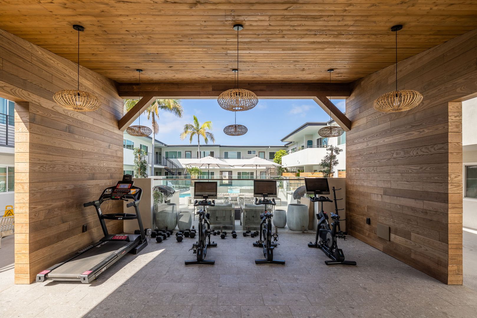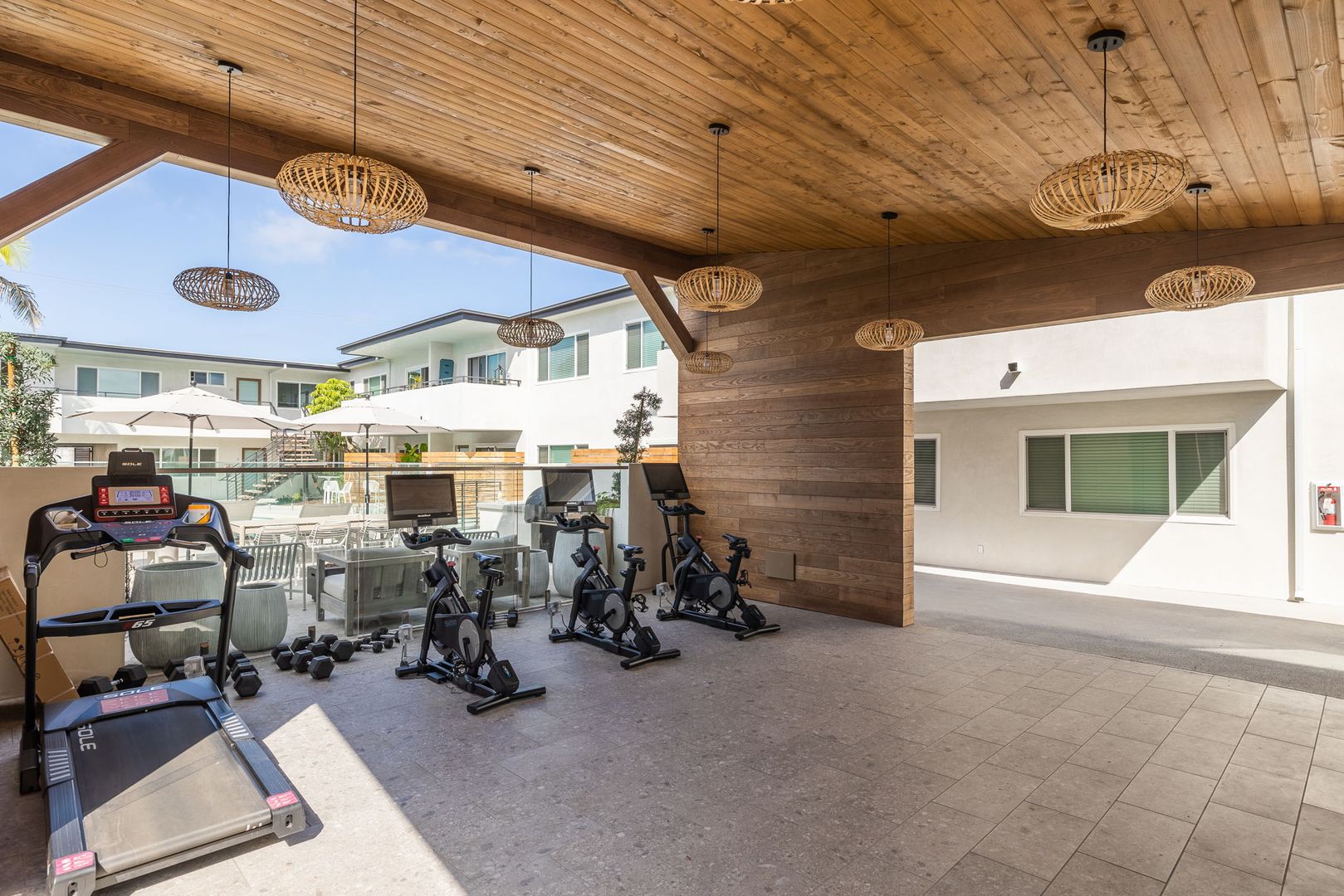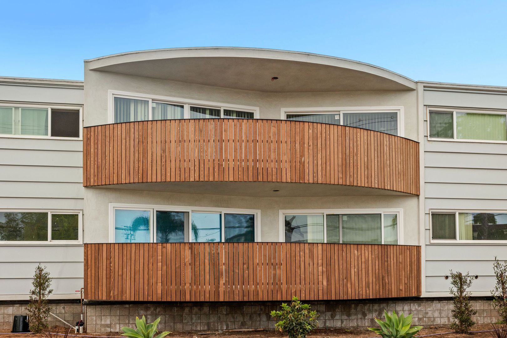 The exterior has received a fresh and modern makeover with: NEWEr siding and smooth stucco, newer roof, New/newer windows , fresh paint, BBQs (2x) / fire pits (3x), lounge chairs, couch and tables - perfect for al fresco entertaining! Newer OPEN-AIR GYM with new NordicTrack Bikes and other gym equipment. new remodeled pool area with chaise lounge chairs, fire pits and beautiful, newer landscaping. Newer water and electric solar panels for the building as well as new copper plumbing and some new sewer drain lines!