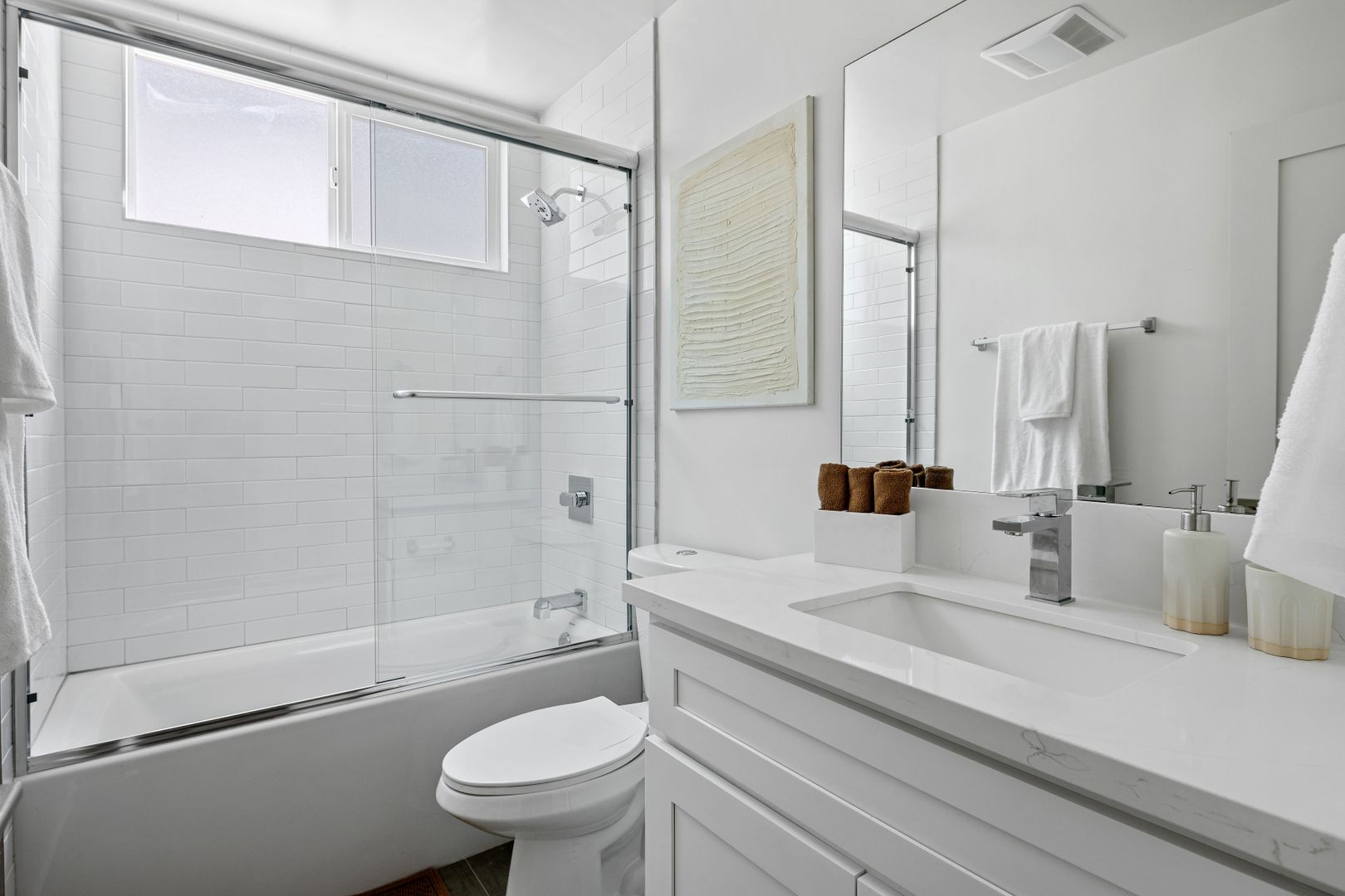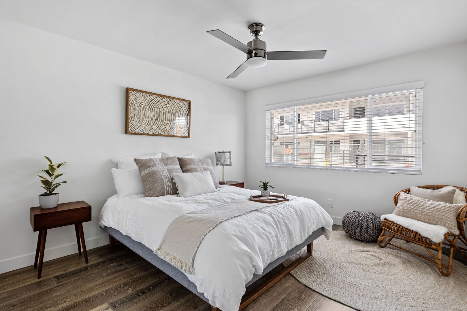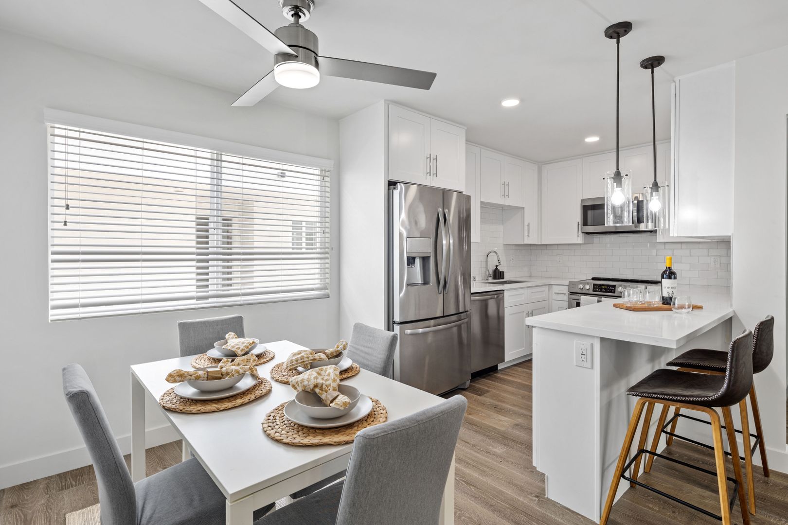 NEWLY Remolded — New Remodeled 1BD 1BA W/ Patios/ Balconies, apartments with: Shaker white cabinets in the kitchen and bathrooms, white quartz counters, tile floors in the bathroom, stylish wood laminate floors in the living room, kitchen & bedrooms, SOAKING (DEEP) tub, STAINLESS STEEL APPLIANCES (dishwasher, range, microwave & refrigerator), WASHER and DRYER & AC in unit, fixtures and SMOOTH CEILINGS throughout!