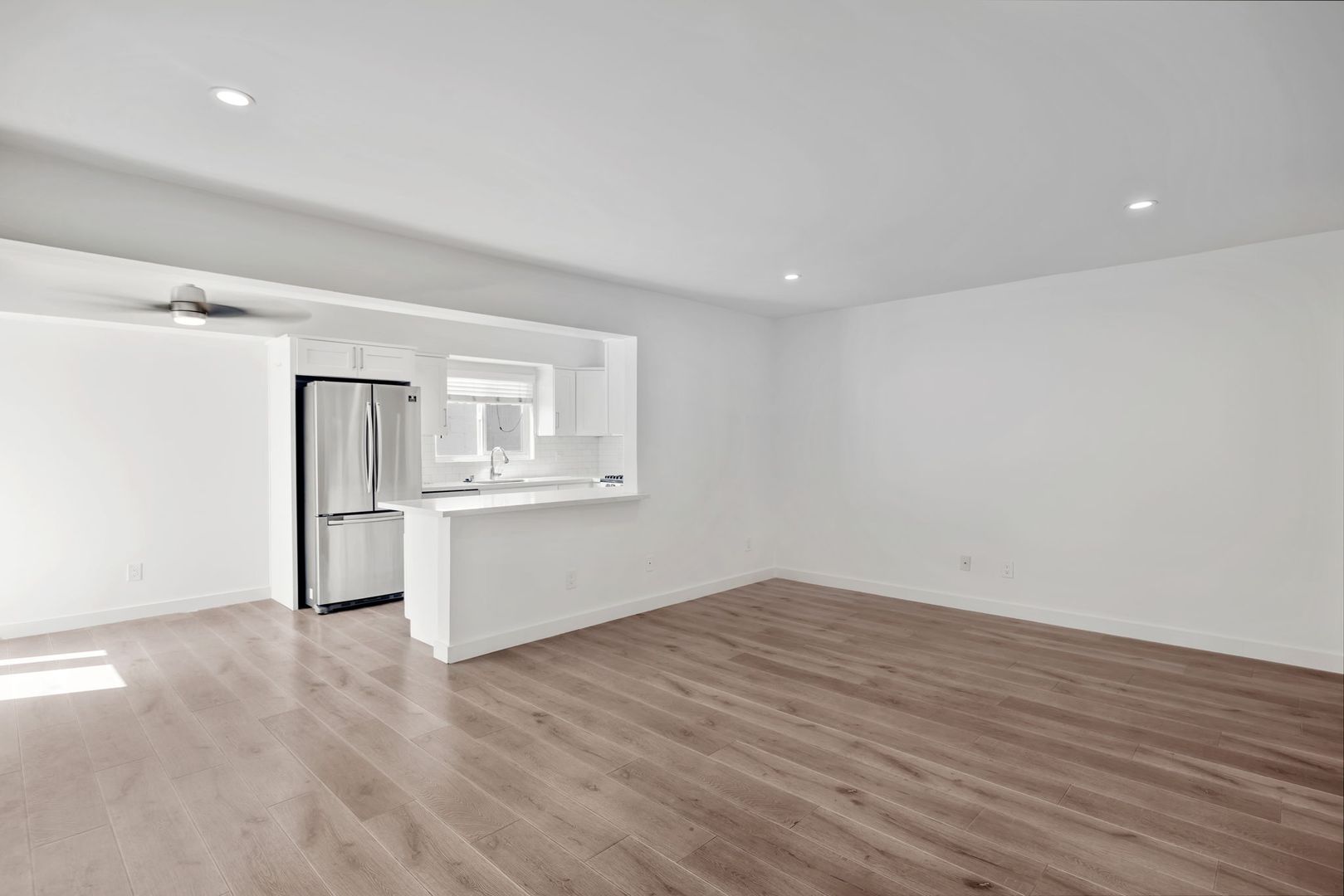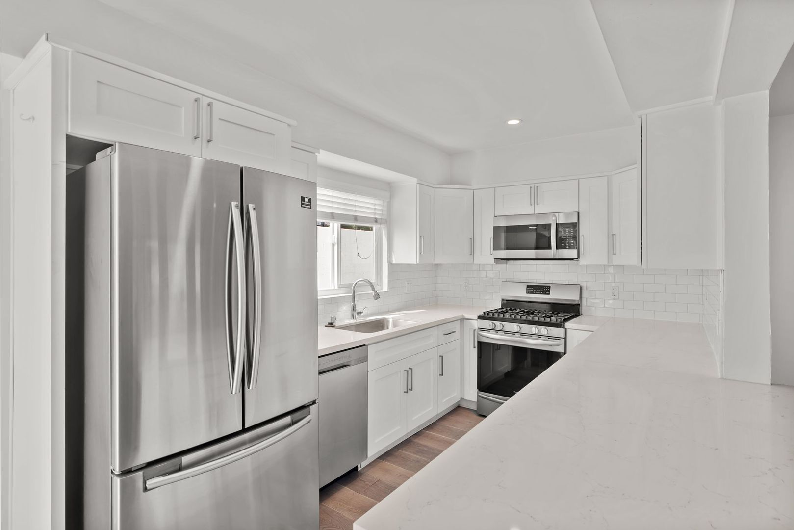 Walking distance to Beach (approx. 1 mile) Lazy Acres, and Valley Park! Remodeled 3 Bed 2 Bath with a PRIVATE PATIO and comes with: modern white shaker cabinets, white quartz counter tops, stainless steel appliances (Samsung: Fridge. Frigidaire: Range, Dishwasher and Microwave), LG WASHER AND DRYER included inside unit, bathroom (tub/tile/vanity), stylish beachy wood laminate flooring throughout! All New Plumbing, Electrical (sub panels, outlets and plugs and some wiring), Recessed Lights, Heating, (newer/new) Windows, Roof, Garage Doors, Smooth Stucco and Siding!