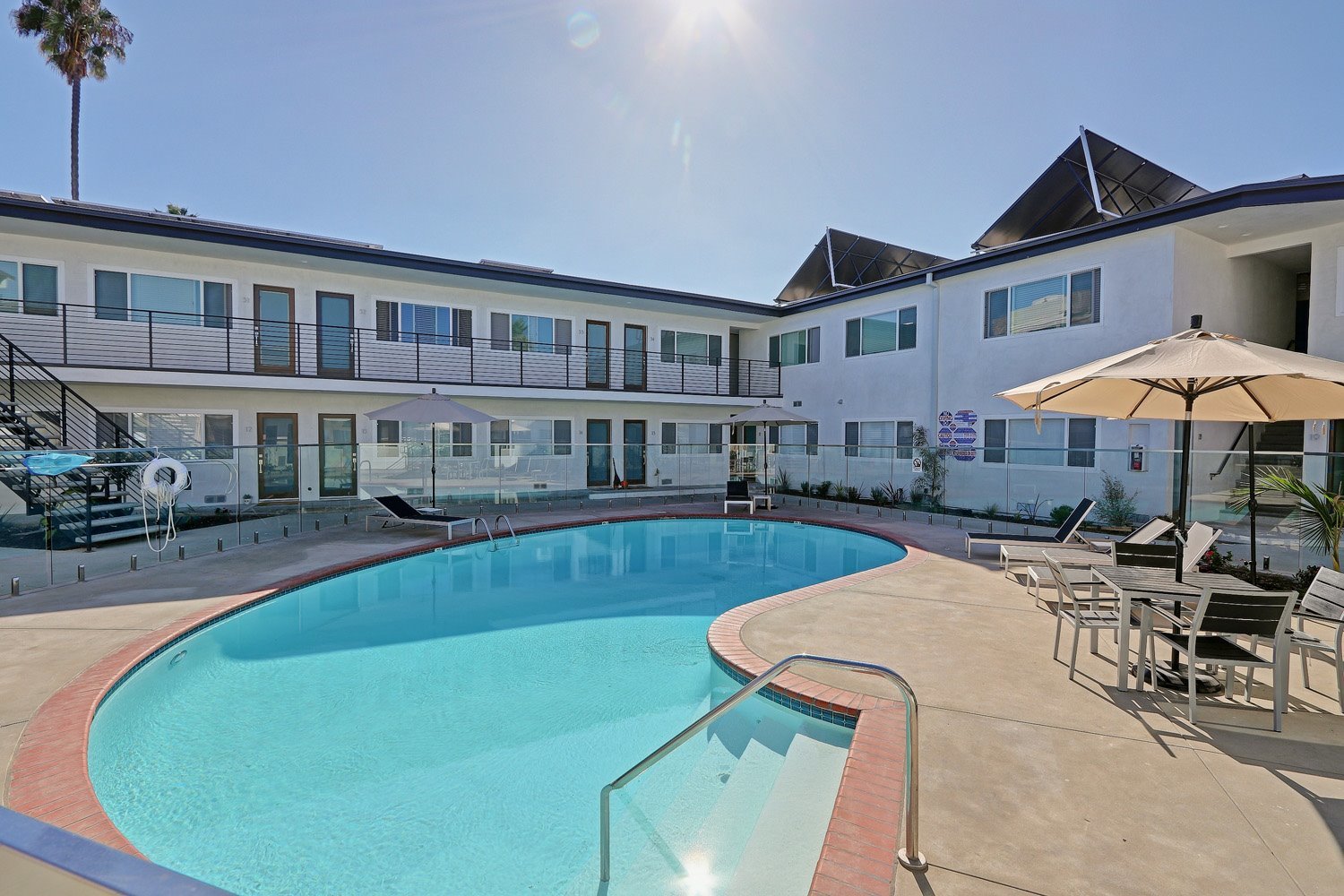 Exterior received a fresh and modern make over with NEW: BUILT IN GAS BBQ AND LOUNGE CHAIRS/TABLE at Pool Area, Siding, Roof, Windows(newer), Interior stucco (smooth Stucco!) and new exterior stucco, Paint, Commercial Glass Front entrance controlled access gate and landscaping!