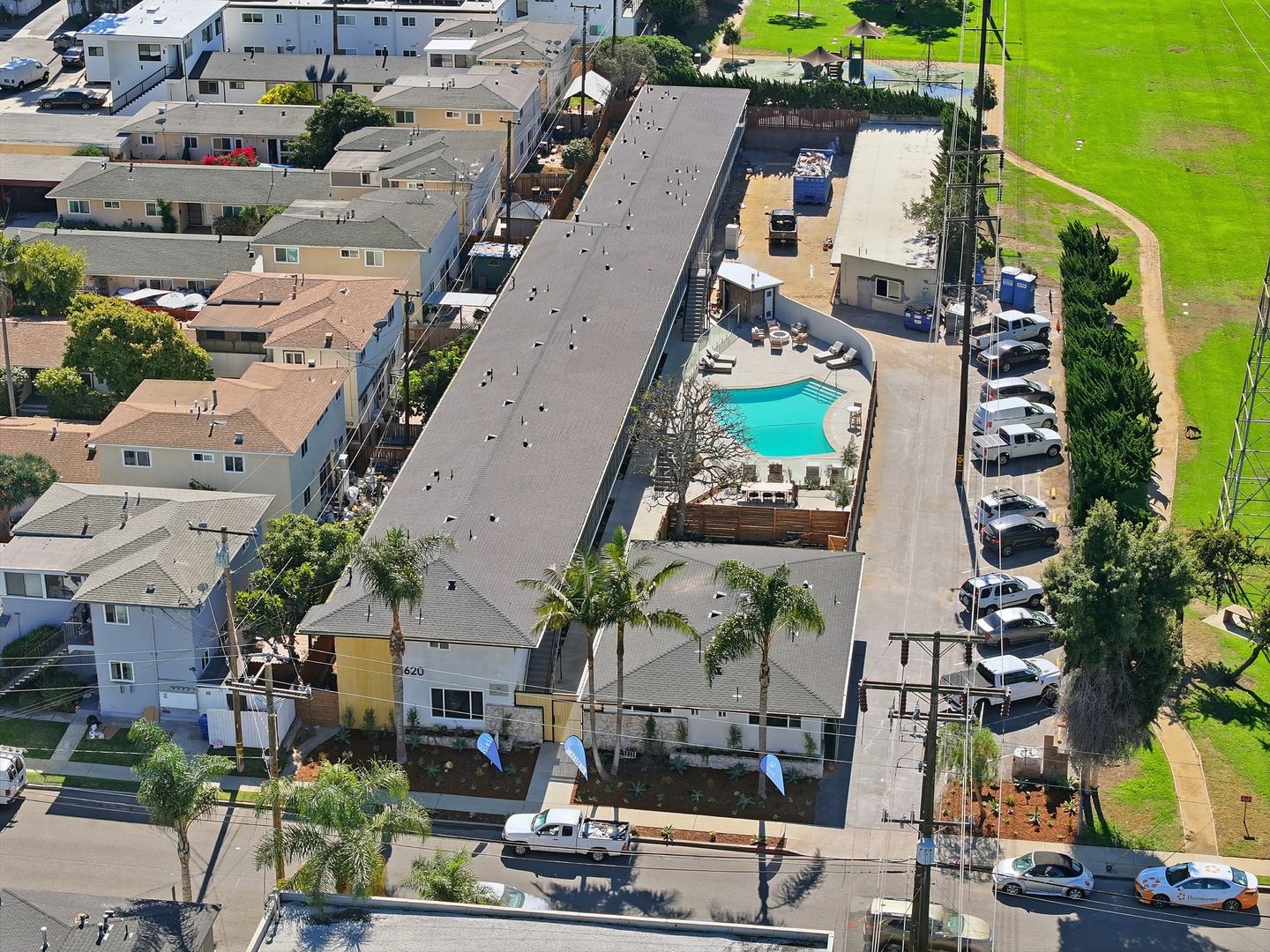 The exterior has received a fresh and modern makeover with: newer siding and smooth stucco, new roof, newer windows , fresh paint, BBQ / fire pit, OUTDOOR SEATING perfect for al fresco entertaining! Brand new resort style pool area with outdoor seating, fire pits and beautiful, new landscaping. Newer water pipes for the building as well as new copper plumbing and some newer sewer drain lines!